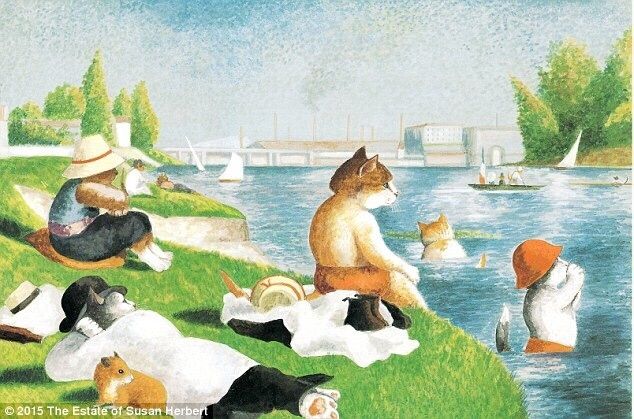 画家Susan Herbert,还是一个猫艺术家,他把很多艺术作品重新创作成了猫主题!